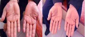 今年36岁张强是郑州一所中学的教师,6年前手上脚上都患上了湿疹,先后在郑州市多家医院就诊过,但是一直没有好转,经常这里好了那边又开始,总是反反复复,不能治好。身为教师的张先生,经常因为手上湿疹引起的瘙痒难受而严重影响了教学,心情极度抑郁。2010年10月,在同事的推荐下他来到了郑州肤康皮肤病研究所,这时候,张老师的手部脚部皮损处已经出现了皮肤增厚、粗糙、苔藓样变等症状。
