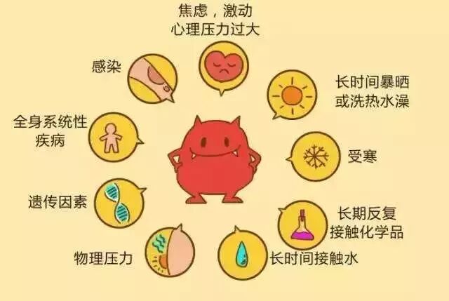由于天气的炎热,出现荨麻疹病情的人也变得多了起来,小编今天就来给大家普及一下荨麻疹的相关知识,希望能帮到大家。1、皮疹为风团、潮红斑,大小不等,形状各异。常突然发生,成批出现,数小时后又迅速消退,消退后不留痕迹。但可反作;2、自觉瘙痒,可伴有腹痛、恶心、呕吐和胸闷、心悸、呼吸困难,少数有发热、关节肿胀、低血压、休克、喉头水肿窒息症状等;3、病程长短不一,急性荨麻疹病程在1个月以内;超过1个月为慢性。1、食物以鱼、虾、蟹、蛋类常见。其次某种香料调味品亦可引起;4、动物及植物因素,如昆虫叮咬或吸入花粉、羽毛等;5、物理因素,如冷热、日光、摩擦和压力等都可引起。油煎、油炸或是辛辣类的食物较易引发体内的热性反应的食物少吃。1、外界接触物:特异体质的人常对化妆品、化学品或外用药水、药膏、药粉起过敏,常由接触的地方先行起风疹块。2、吸入物:羽毛、绒毛、棉花、填塞枕头的物品、花粉、动物的皮肤屑、烟雾、含小昆虫卵的灰尘、化妆品(香水、粉)、家畜毛、空气污染物等皆有可能引起荨麻疹。3、物理性因素:有些人在早上或晚上,天气比较冷或比较热时全身就会起荨麻疹。有些人在紧张、流汗、喝酒、用力、运动、天气热时会引起小小的膨疹,有的不会痒,有的很痒;有些人吹到冷风,碰到冷水,也会引起荨麻疹。4、心理因素:情绪兴奋有时也会引起荨麻疹,此外情绪不稳、紧张、忧虑或疲劳,确能加重过敏反应。5、饮食刺激:辛辣食物、牛羊肉、海鲜、饮酒等,都有可能成为诱发荨麻疹的因素。