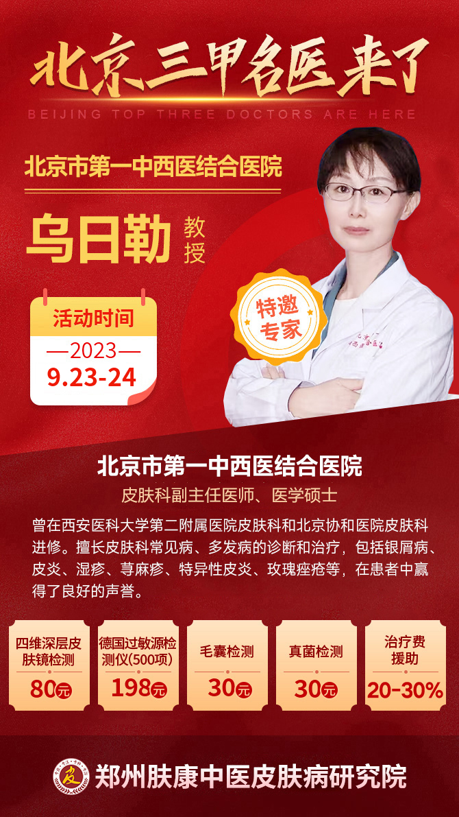 9月23日至24日郑州肤康皮肤科特邀北京乌日勒教授坐诊
