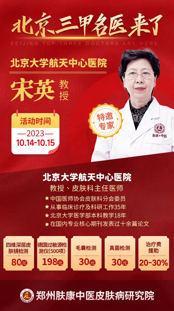 10月14-15日郑州肤康皮肤病医院特邀宋英教授莅临肤康进行联合会诊。