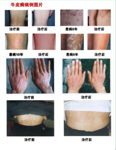 3、巩固期 重度牛皮癣患处鳞屑成片成块脱落,临床证明患者鳞屑可脱落,色泽色素消退。红皮型、脓胞型、关节型牛皮癣在此阶段治疗,皮损部位颜色和功能恢复正常,肌肤变得濡润光泽且富有弹性,与正常人无异。皮肤恢复到正常状态,皮肤光滑如新,达到了的效果,再现完美健康的肌肤。