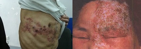 6、遗留疤痕:病情严重者,皮肤还出现大疱、血疱及坏疽,后遗留大量疤痕,如散在于面部则严重影响容貌。